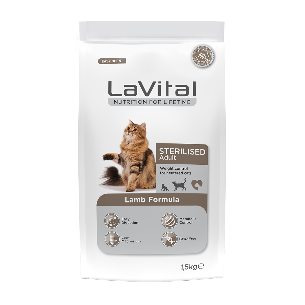 Complete and balanced pet food with lamb for sterilised adult (1+ ages) cats.