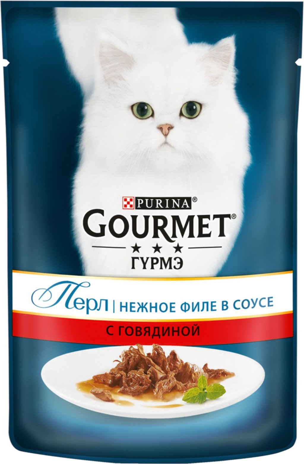 Gourmet Perle Mini Beef Fillets in Gravy are made from roasted meat chunks in a flavorful sauce. This food is designed for adult cats aged 1 to 7 years with a normal activity level.