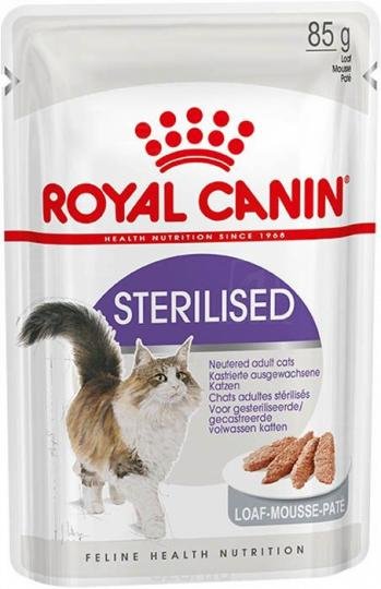 Royal Canin Sterilised Loaf is a complete wet food designed for sterilised cats aged 12 months and older. This product helps maintain an optimal weight and supports the health of the urinary system, providing balanced nutrition that meets the instinctive preferences of adult cats.