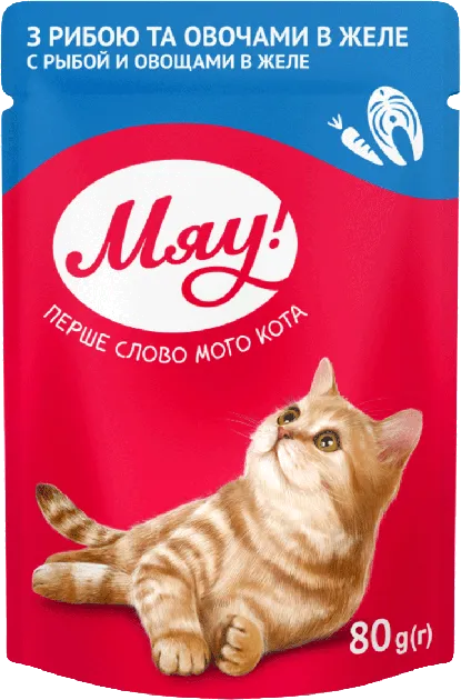 Meat and animal by-products (pieces not less than 63%), fish and fish by-products not less than 4% (pieces not less than 17%), cereals, vegetables 2.5%, minerals, extracts of vegetable proteins.