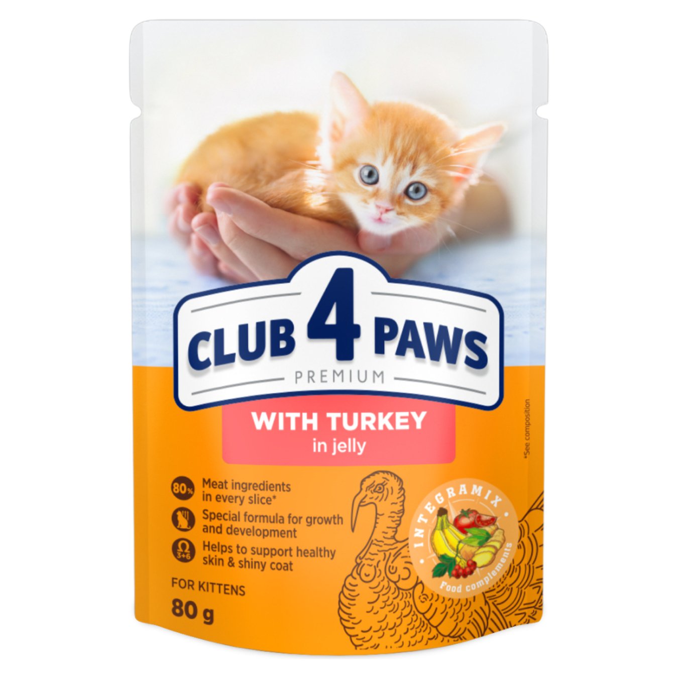 Club 4 Paws Premium food with turkey in jelly is a complete canned food for kittens. It contains all the necessary nutrients that will help your babies grow up healthy and strong. This food is made with fresh ingredients and has a pleasant taste, which makes it popular among kittens.