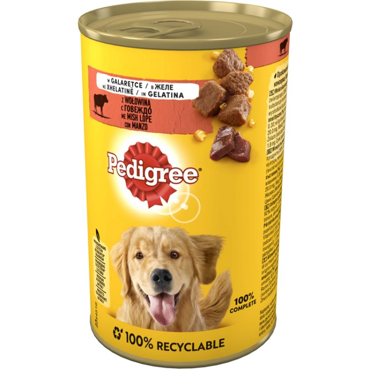 Pedigree wet food is a 100% complete and balanced meal designed for adult dogs aged 1 year and older, suitable for lifelong feeding. It is recommended for combined feeding with dry food.