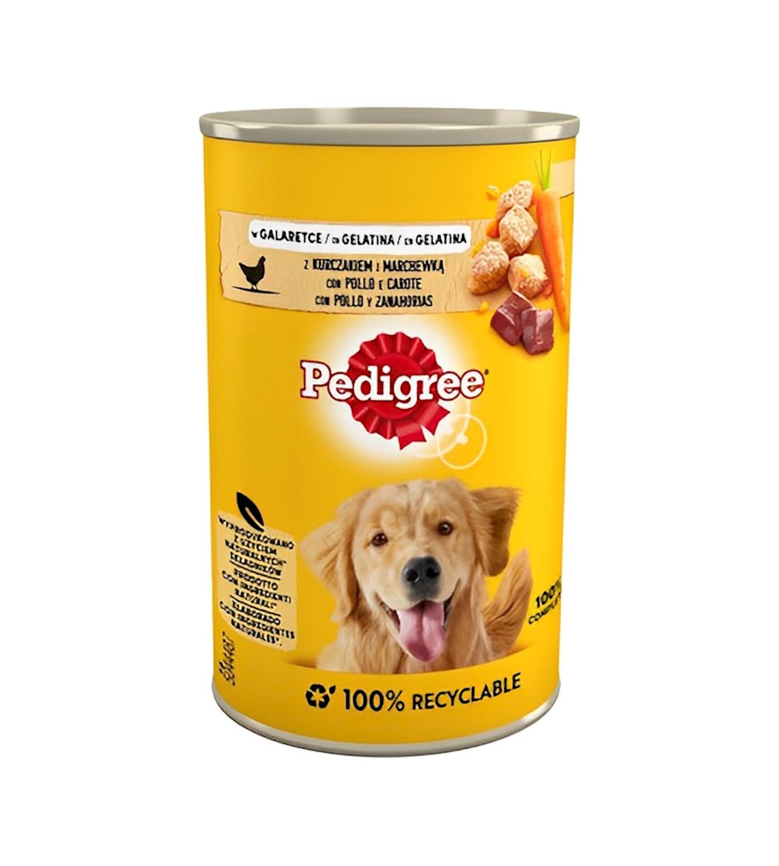 Pedigree Chicken and Carrots in Jelly is a complete and balanced wet food for adult dogs, providing all the essential nutrients your dog needs for a healthy and active life. Each 400g can offers a delicious combination of tender chicken and wholesome carrots in a savory jelly.