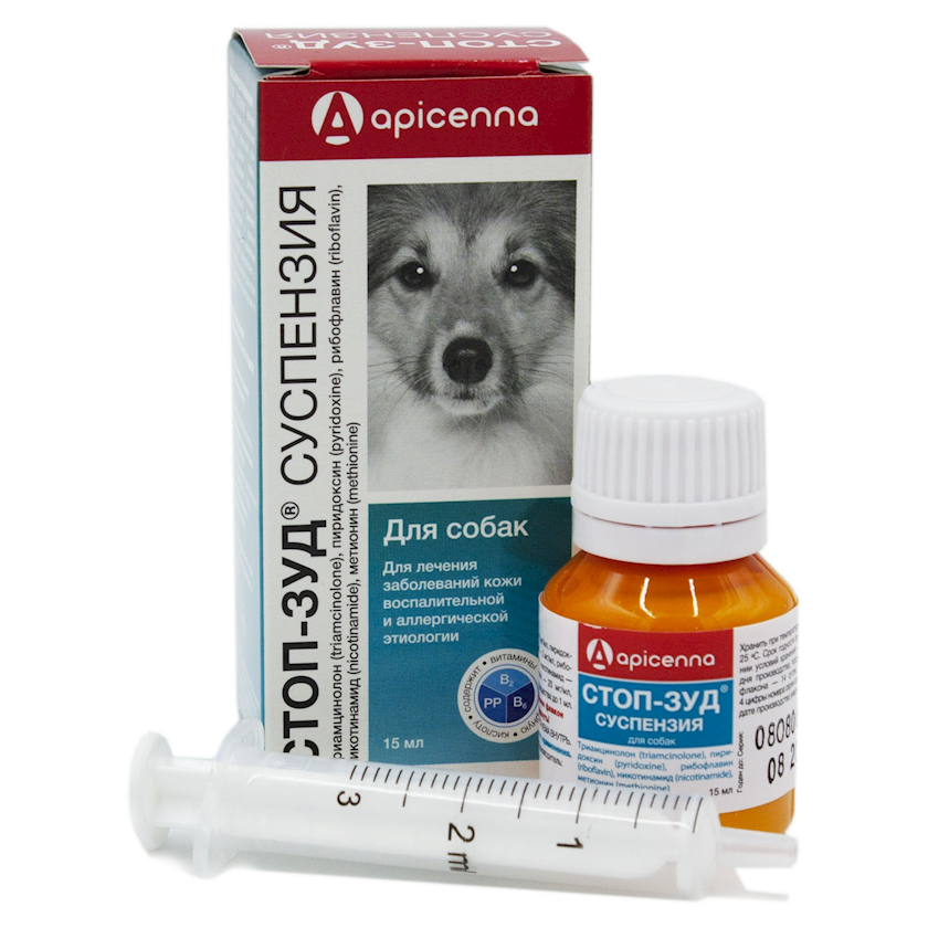 Stop-Itch Suspension is prescribed to dogs and cats for the treatment of inflammatory and allergic skin diseases (such as atopic dermatitis, eczema, diffuse neurodermatitis, itching, alopecia, reactions to insect bites).