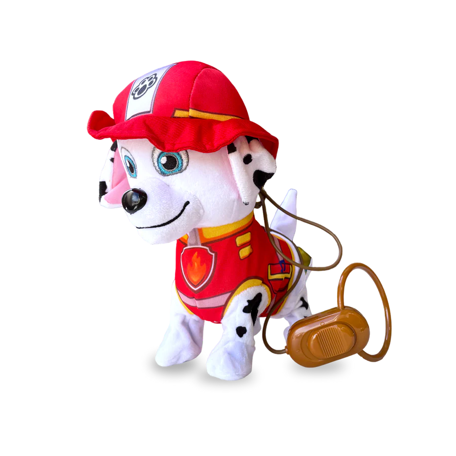 Marshall, the brave and resourceful police pup from Paw Patrol, is ready to spring into action. With his signature red firefighter uniform and trusty pup pack, Marshall is always ready for action, he’s always on the case! But what sets this toy apart is its ability to walk alongside your child. With a simple press of a button, Marshall comes to life, trotting faithfully by your side just like he does in the show. He walks, dances and plays the original soundtrack, barking and wagging its tail. Take him for a walk like your real pet with the soft plushy leash.