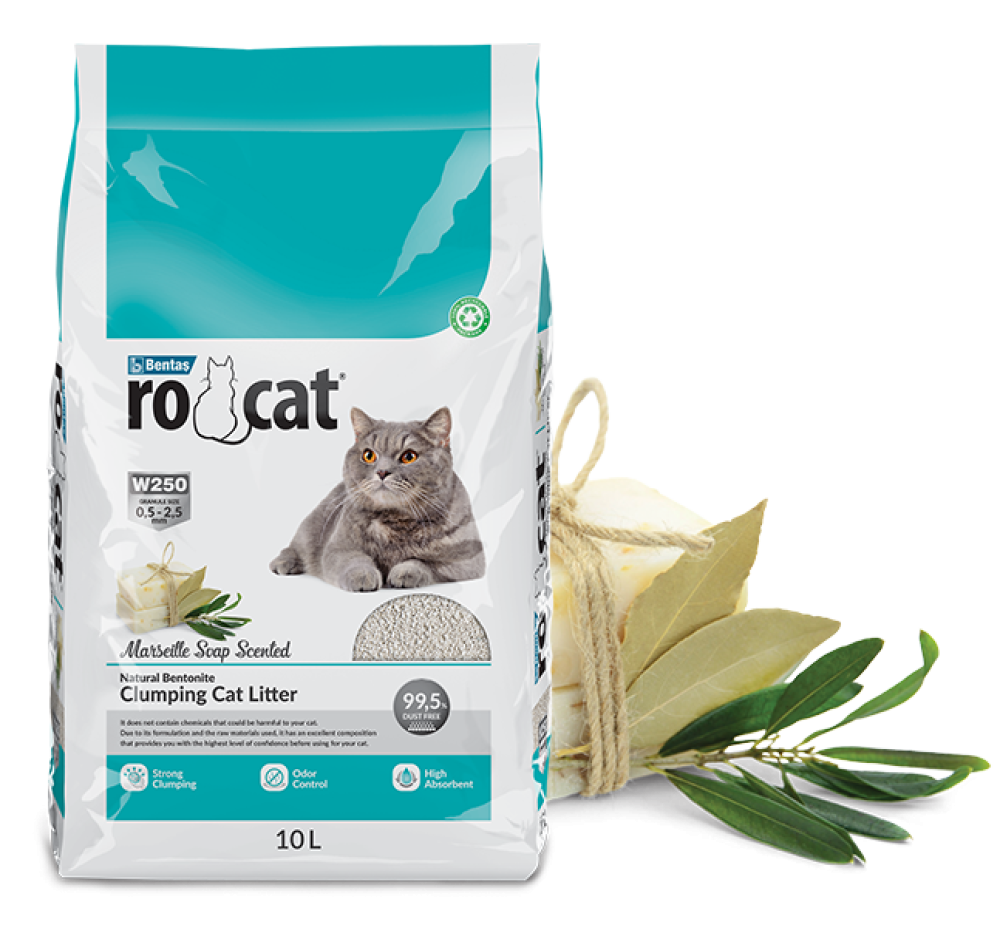 Rocat® Clumping Fine Granule Cat Litters are made from 100% natural bentonite minerals. Their highly porous structure swiftly absorbs liquid and moisture, forming clumps with each use to provide your cat with a highly hygienic environment. Strong and fast clumping prevents urine or feces from sticking to your cat’s paws and spreading around. The clumping and fine granular structure help maintain the hygiene offered at the first use and support economical consumption by generating minimal waste. They are easy to clean, 99.5% dust-free, and made from natural bentonite clay without any harmful ingredients that could endanger your cat’s health.