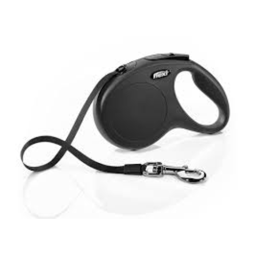 Flexi Classic Tape M (5m / 25kg) A sturdy 5-meter retractable tape lead for dogs up to 25kg.Features a robust ribbon design, smooth retraction, and an intuitive braking system for maximum control and durability