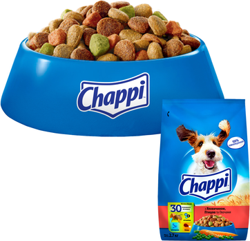 Chappi complete dry food is produced for dogs of all breeds from 1 year old. The balanced diet is enriched with all the beneficial substances, so it can be given to your pet daily throughout its life.