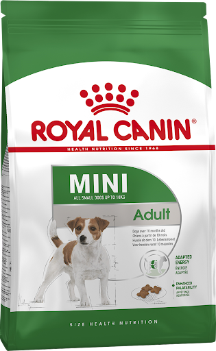 ROYAL CANIN Mini Adult is designed for small breed dogs (weighing up to 10 kg) over 10 months old and is formulated to meet the nutritional needs of adult dogs.